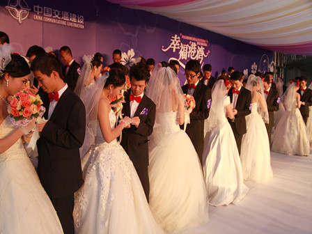 5月4日,在美麗的珠江江畔,四航局第五屆企業(yè)文化節(jié)開幕式暨第四屆“和諧四航、真愛永恒”青年集體婚禮隆重舉行,在浪漫溫馨、喜慶祥和的氣氛中,26對新人在各級領(lǐng)導(dǎo)、各位家長、嘉賓及同事們的祝福中喜結(jié)連理。