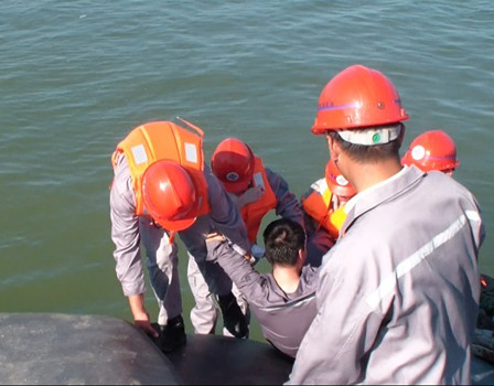 6月18日,雙魚島陸島連接橋工程開展了落水應(yīng)急救援演練。