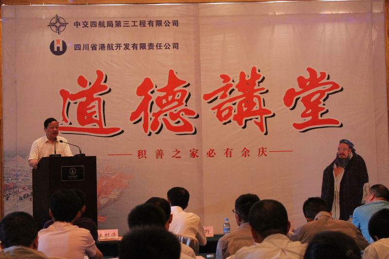 8月12日,四航局三公司與四川省港航開發(fā)有限責(zé)任公司聯(lián)合舉辦“道德講堂”活動。四航局黨委副書記、紀(jì)委書記張猛,四川港航紀(jì)委副書記袁野,南充市團(tuán)委副書記黃映等領(lǐng)導(dǎo)應(yīng)邀參加活動。