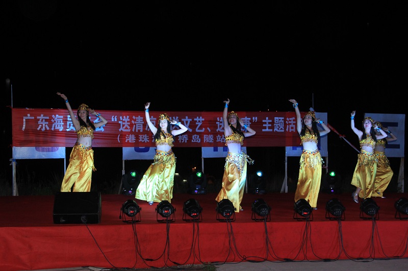 省海員工會(huì)職工業(yè)余藝術(shù)團(tuán)、珠海市總工會(huì)文工團(tuán)為現(xiàn)場(chǎng)700余名建設(shè)者帶來(lái)一場(chǎng)精彩的文藝晚會(huì),晚會(huì)包括舞蹈、歌曲、魔術(shù)、樂(lè)器演奏等內(nèi)容。觀眾還作為特邀嘉賓,參與了現(xiàn)場(chǎng)演唱和魔術(shù)表演,贏得工友們連聲喝彩。