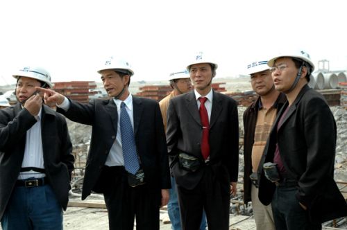 該工程合同工期三年半,需施打3425根大直徑鋼管樁和大量的樁內(nèi)嵌巖、錨錠施工,要完成碼頭基槽、駁岸區(qū)及港池航道挖泥2000多萬立方米,施工技術(shù)標(biāo)準(zhǔn)以英國(guó)標(biāo)準(zhǔn)為主。項(xiàng)目部按照集團(tuán)和局領(lǐng)導(dǎo)安全、優(yōu)質(zhì)、高效地按期完成施工任務(wù)的要求,制訂了"講誠(chéng)信、講和諧、創(chuàng)效益、創(chuàng)品牌"的工作目標(biāo)和措施,高效配置資源,嚴(yán)密組織,精心施工。自去年3月1日開工至今,完成了三分之一的鋼管樁施打、四分之一的挖泥施工和400米碼頭縱橫梁澆注,其它工序也按計(jì)劃進(jìn)行,形成了1000多米的流水作業(yè)線,完成施工產(chǎn)值5.8億元。現(xiàn)在,項(xiàng)目部全體員工士氣高昂,決心為企業(yè)發(fā)展做出更大貢獻(xiàn)!圖為副局長(zhǎng)羅寬榮、中港副總經(jīng)理莫文賀到現(xiàn)場(chǎng)慰問員工、指導(dǎo)工作。