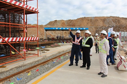 葉華能察看了陸豐核電項(xiàng)目攪拌站、扭王塊預(yù)制場(chǎng)以及重件碼頭工程沉箱預(yù)制場(chǎng),了解了陸豐核電項(xiàng)目各工程概況、工程重難點(diǎn)及施工工藝等詳細(xì)情況,對(duì)沉箱鋼筋綁扎、模板吊裝等施工項(xiàng)目的標(biāo)準(zhǔn)化管理、工藝創(chuàng)新及作業(yè)人員的專(zhuān)業(yè)程度給予肯定,他認(rèn)為項(xiàng)目在攪拌樓建設(shè)和文明施工方面,能為甲湖灣火電廠工程建設(shè)起到很好的借鑒作用。