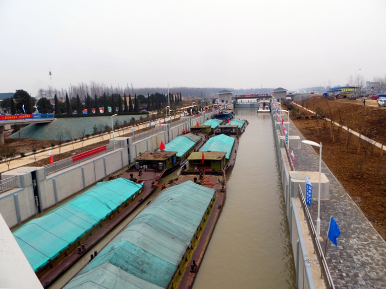 該工程總工期42個月,主要施工內(nèi)容包括:上下閘首、閘室、導航墻、靠船墩、停泊錨地、引航道護岸、閘區(qū)工作橋、跨閘公路橋建設和堤防加固等。主橋首次采用GFRP復合材料進行設計、試驗、制作和安裝,科研成果通過了江蘇省交通運輸廳組織的鑒定。
