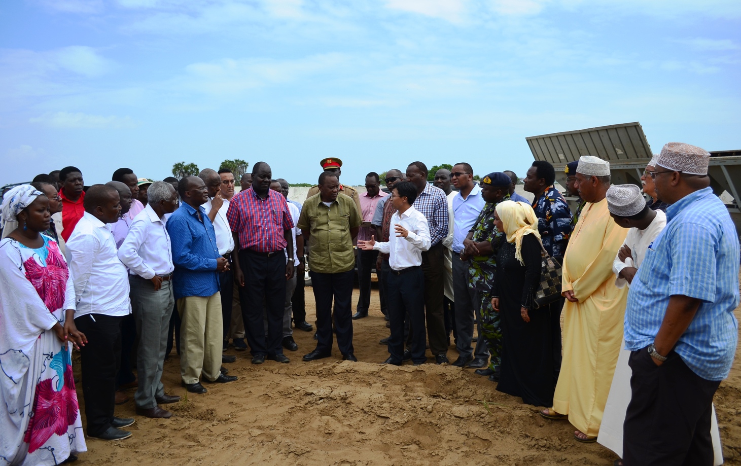肯雅塔先后視察了項目營地建設(shè)、攪拌站、鋼管廠龍門吊等施工現(xiàn)場和項目辦公區(qū),聽取了關(guān)于項目進展情況的匯報,對項目前期工作進展表示贊賞,并對項目建設(shè)者的勤奮工作表示充分的肯定和贊揚。他指出,拉姆港項目是LAPSSET經(jīng)濟走廊項目關(guān)鍵性項目,項目建設(shè)可以帶動拉姆地區(qū)經(jīng)濟發(fā)展,解決當?shù)厝罕娋蜆I(yè),對拉姆地區(qū)未來經(jīng)濟發(fā)展具有戰(zhàn)略發(fā)展意義。
