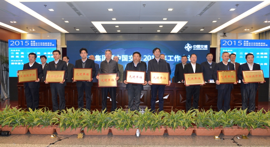 李惠明代表四航局領(lǐng)取“2015年度中國交建信息化工作先進單位”
