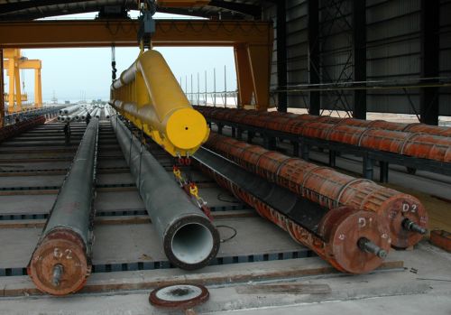我局聯(lián)營(yíng)的江門(mén)裕大管樁廠順利建成,近日試產(chǎn)成功,一次成型單樁長(zhǎng)50米、直徑1.2 米,為國(guó)內(nèi)首創(chuàng)、世界一流。