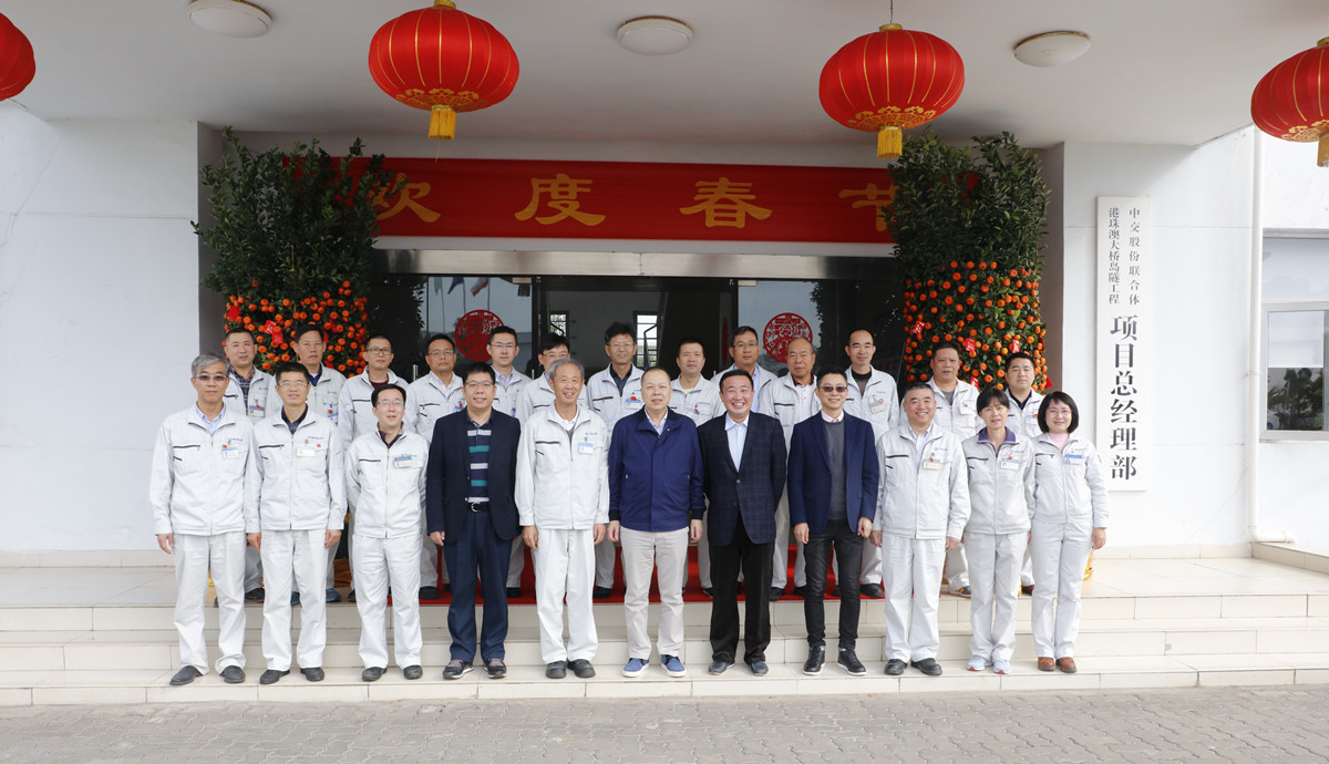 1月28日大年初一,中國交建總裁陳奮健到港珠澳大橋島隧項目總部及四航局一公司籌建的港珠澳大橋澳門口岸項目慰問堅守工作崗位的一線施工人員,四航局董事長梁卓仁等陪同慰問。