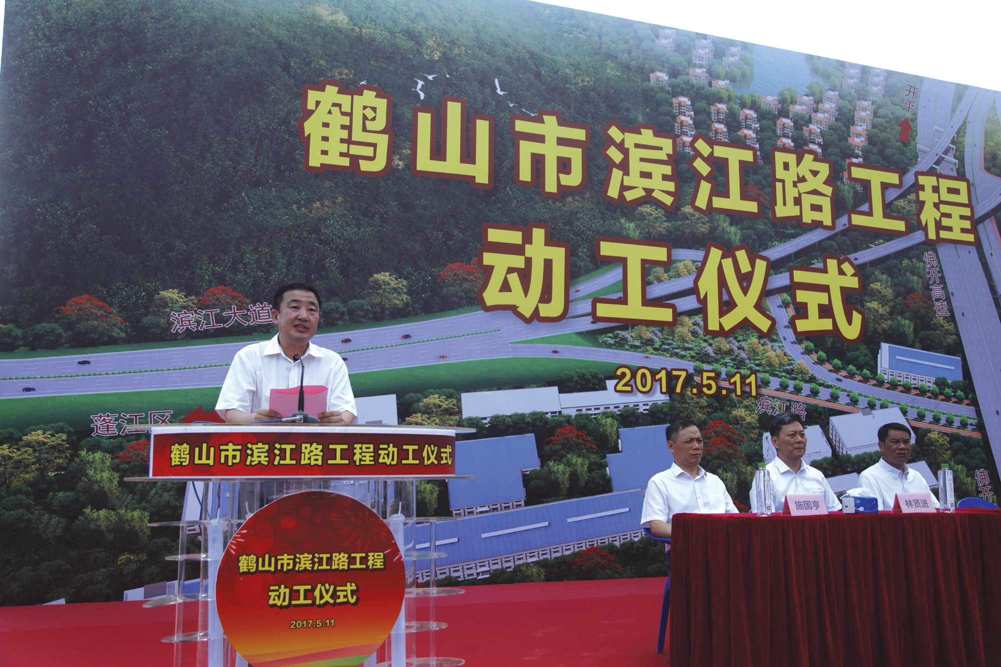 5月11日,四航局董事長(zhǎng)、黨委書記梁卓仁出席鶴山市濱江路工程動(dòng)工儀式。鶴山市委書記伍培進(jìn)、市長(zhǎng)林賢進(jìn)等領(lǐng)導(dǎo)參加儀式。