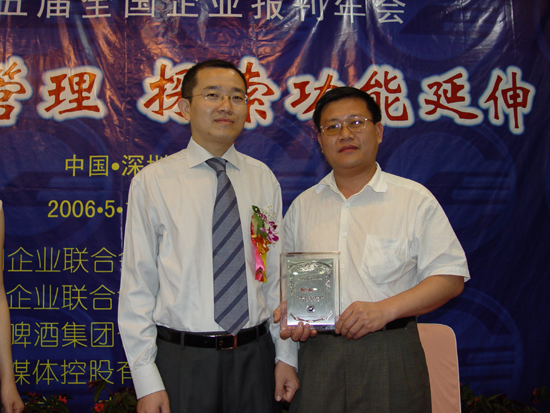 5月15日,第五屆全國(guó)企業(yè)報(bào)刊年會(huì)在深圳召開,中國(guó)企業(yè)聯(lián)合會(huì)聯(lián)合北京大學(xué)、中國(guó)人民大學(xué)舉辦的"第五屆全國(guó)企業(yè)報(bào)刊優(yōu)秀獎(jiǎng)(集體)評(píng)選活動(dòng)揭曉,我局《華南港工報(bào)》榮獲2005--2006年度全國(guó)企業(yè)報(bào)刊優(yōu)秀獎(jiǎng)集體一等獎(jiǎng)、四航局網(wǎng)站、四航文化網(wǎng)分別榮獲2005--2006年度全國(guó)企業(yè)優(yōu)秀網(wǎng)站將。企業(yè)文化部副主任、《華南港工報(bào)》主編鄭祖平代表我局領(lǐng)獎(jiǎng)。