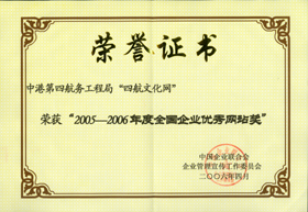 四航文化網(wǎng)獲2005--2006年度全國(guó)企業(yè)優(yōu)秀網(wǎng)站獎(jiǎng)