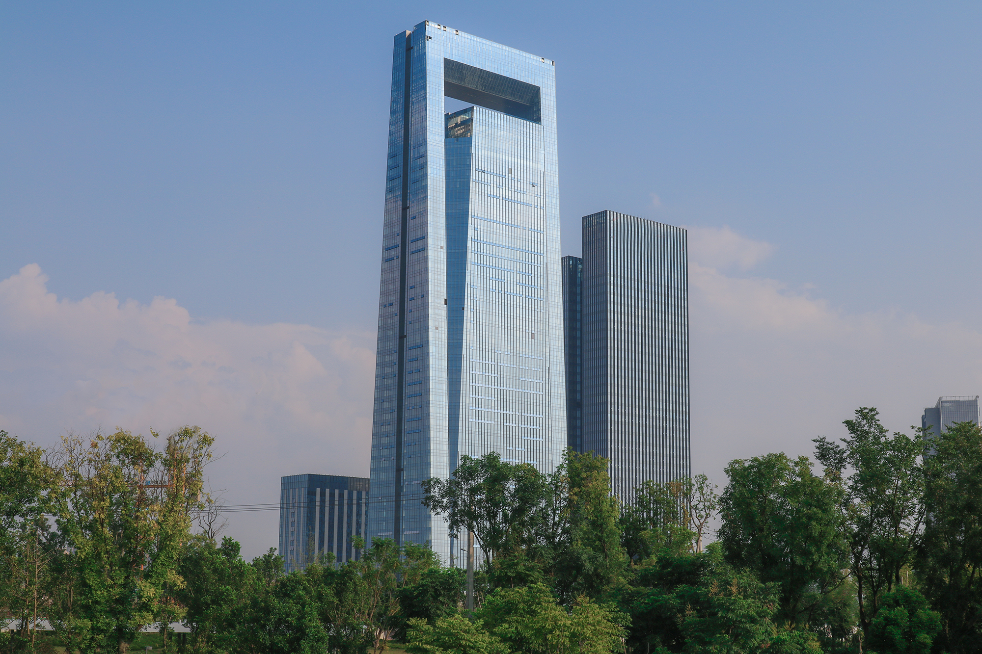 8月20日,四航局成都天府新區(qū)中交國際中心項(xiàng)目完成幕墻施工。