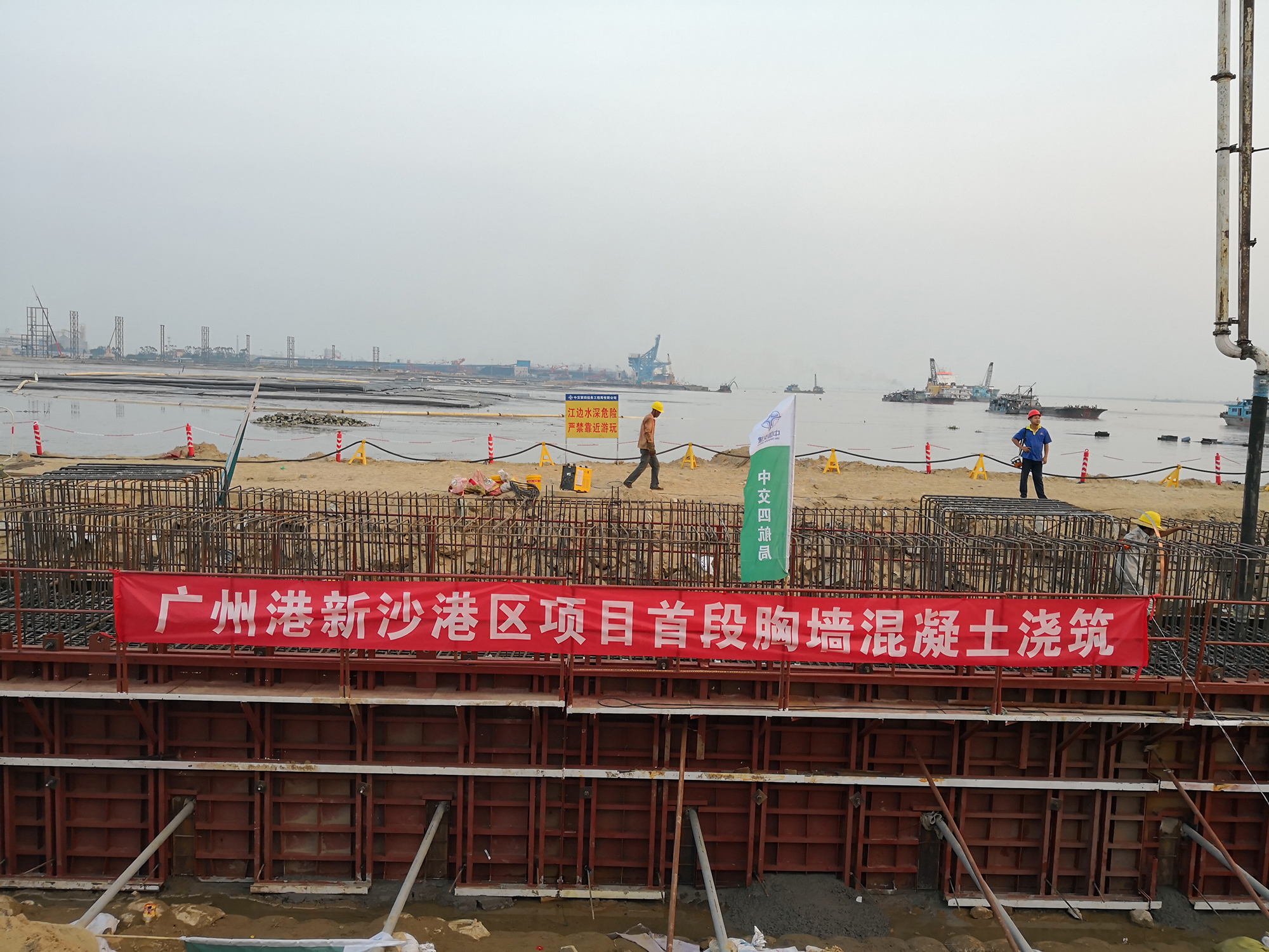 10月7日,四航局廣州港新沙港區(qū)11號、12號通用泊位及駁船泊位工程完成碼頭上部結構首段胸墻混凝土澆筑,標志著項目碼頭上部結構全面開工,比原計劃開工日期提前近100天。