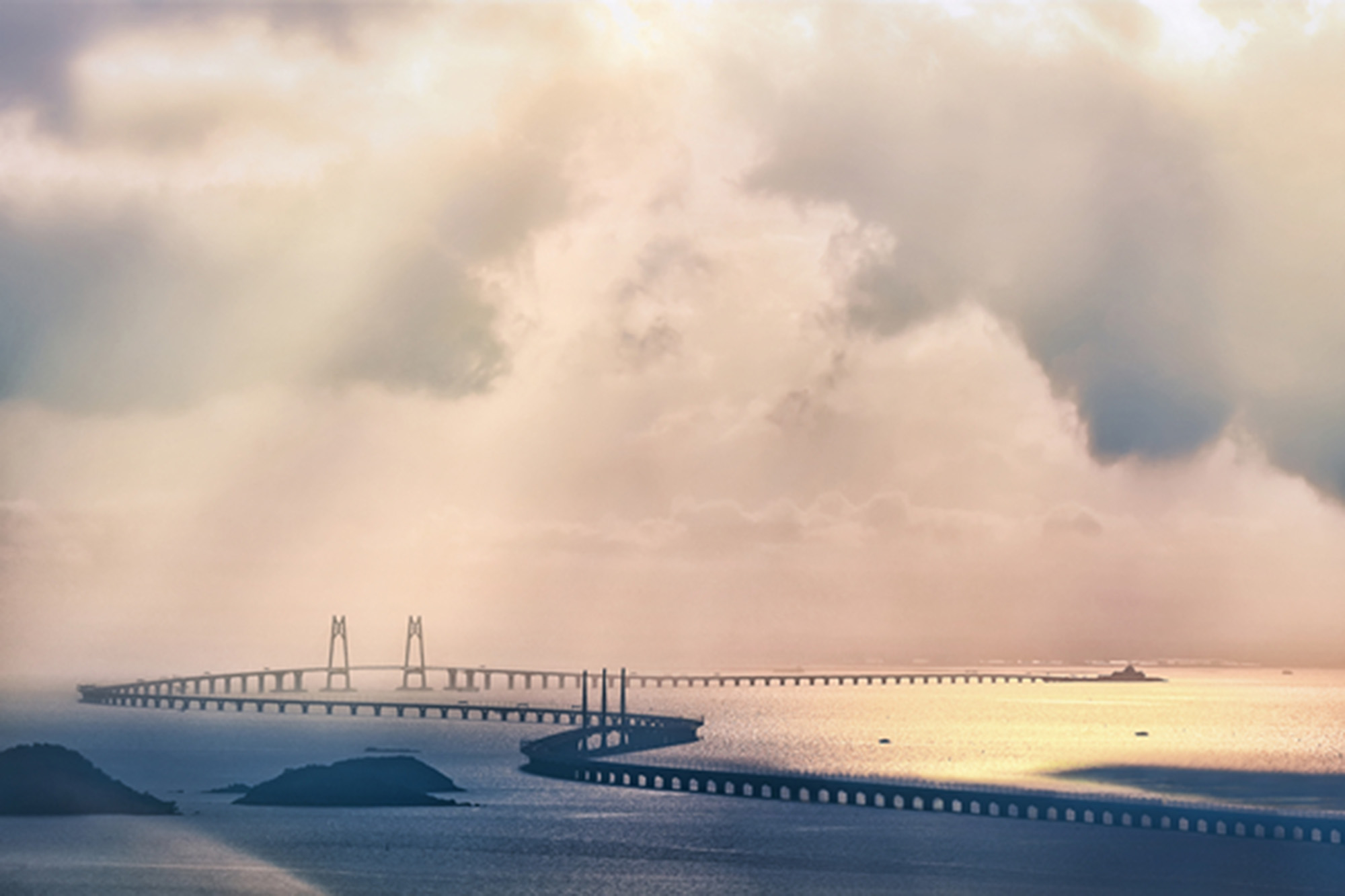 青州航道橋上,優(yōu)美的“中國(guó)結(jié)”熠熠生輝,蘊(yùn)含著三地同心的美好寓意。三地政府通力協(xié)作,中國(guó)交建集結(jié)萬(wàn)余名精兵強(qiáng)將,櫛風(fēng)沐雨,奮力拼搏。大橋通了,建橋人的皺紋多了、深了,頭發(fā)少了、白了。他們欣慰的是,大橋?qū)⒆尰浉郯娜刂鸩綄?shí)現(xiàn)產(chǎn)業(yè)相依、設(shè)施相通,三地的人流、物流、資金流、技術(shù)流等將會(huì)得到更高效配置,三地人民的心將會(huì)連得更緊。