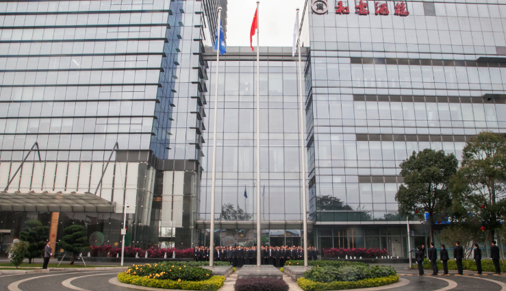 伴隨著中華人民共和國國歌《義勇軍進(jìn)行曲》、《四航之歌》的鏗鏘旋律,五星紅旗和中國交建司旗在6名升旗手的護(hù)衛(wèi)下冉冉升起。本部全體員工肅立仰望,向五星紅旗和中國交建司旗行注目禮,自豪感和神圣感油然而生。