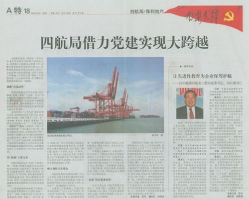 中港第四航務(wù)工程局是一家具有50多年歷史的中央駐粵大型國有企業(yè)。改革開放以來,尤其是近三年以來,中港四航局黨委高舉鄧小平理論和"三個代表"重要思想偉大旗幟,認真貫徹黨的十六大和十六屆三中、四中、五中全會精神,全面落實科學發(fā)展觀,緊緊抓住創(chuàng)新這個靈魂,大力創(chuàng)新企業(yè)黨建工作,深入開展"四好"班子創(chuàng)建活動,有力地加強和改進了企業(yè)黨組織建設(shè),推動了企業(yè)競爭力的全面提高,實現(xiàn)了連續(xù)三年跨越三大步的發(fā)展,鑄就了大型國有施工企業(yè)新的輝煌,成為飄揚在南國港灣建設(shè)的一面旗幟。