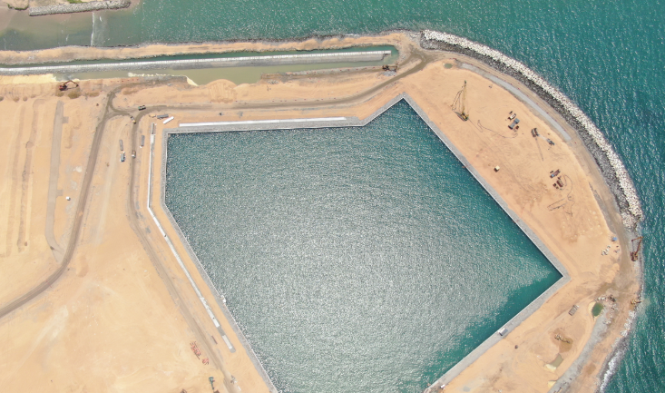 科倫坡港口城項(xiàng)目游艇碼頭外護(hù)岸完成方塊安裝