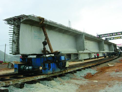 7月16日,一公司漢英項目部和橋梁分公司員工冒著近40度的高溫,通力合作成功吊裝武湖特大橋第一片長30米、重達(dá)70余噸的T梁。該項目共有T梁948片,按業(yè)主要求,7月要吊裝30片T梁。目前,漢英項目部掀起預(yù)制安裝T梁施工高潮。 (曾 苑)