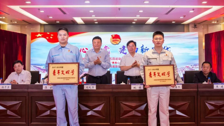 劉起濤與姚煥一同為獲得“中國青年五四獎?wù)录w”榮譽(yù)的四航局港珠澳大橋島隧工程項目部等集體頒發(fā)了“中國交建青年文明號”榮譽(yù)。