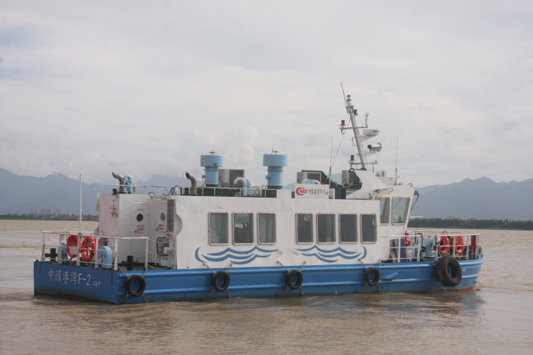1#交通艇為“中國港灣”號系列“F-2”交通艇,總長約18.48米,型寬為4.6米,型深為2.3米,入級BV船級社。該船為單甲板、全電焊鋼制結構,雙機雙槳推進、艉機型的柴油機動力裝置船舶。該船主船體內設燃油艙,可裝燃油超過8噸,設淡水艙可裝淡水約1噸,客艙設于主甲板上的封閉客艙內,每個客位設一個固定座椅,空間設置寬敞。該船主要航行于香港水域。