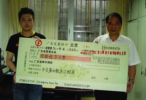 受今年1號(hào)強(qiáng)臺(tái)風(fēng)"珍珠"和4號(hào)臺(tái)風(fēng)"碧利斯"帶來(lái)特大暴雨的影響,廣東省64個(gè)縣(市、區(qū))遭受嚴(yán)重的洪澇災(zāi)害,災(zāi)區(qū)群眾生產(chǎn)、生活面臨極大困難。四航人心系災(zāi)區(qū),慷慨解囊,以實(shí)際行動(dòng)弘揚(yáng)中華民族樂(lè)善好施的傳統(tǒng)美德,為構(gòu)建和諧廣東奉獻(xiàn)愛(ài)心,幫助災(zāi)區(qū)人民重建家園。7月26日,局工會(huì)將全局員工的20多萬(wàn)元捐款分別送交廣東省慈善總會(huì)和捐贈(zèng)給湛江市。