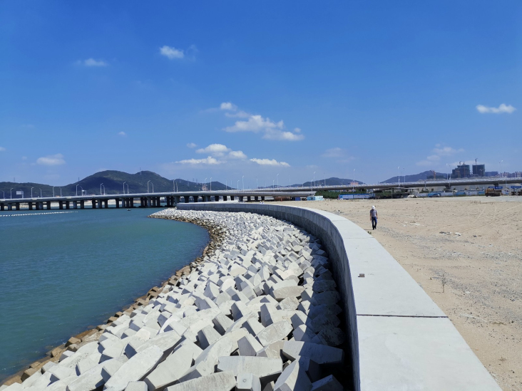 平潭如意湖海堤外側護岸工程位于平潭島西南側、金井灣如意路以西,工程新建斜坡式海堤護岸1102.49米,陸域形成面積6.75萬平方米,后方設排水管渠1處。