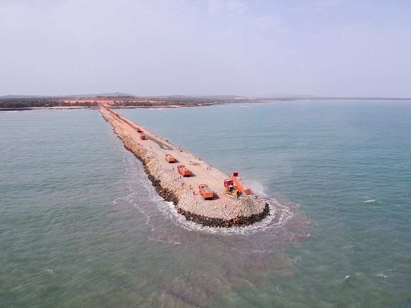 該項(xiàng)目自2019年12月1日開工以來,面對(duì)現(xiàn)場條件復(fù)雜、工期緊、資源匱乏、當(dāng)?shù)貏诠ぜ夹g(shù)水平以及安全質(zhì)量意識(shí)薄弱等諸多不利因素,精心部署,合理調(diào)配資源,充分發(fā)揮項(xiàng)目管理和技術(shù)上的優(yōu)勢,打造一支“能打仗,打勝仗”的項(xiàng)目團(tuán)隊(duì),克服重重困難,在跟進(jìn)施工進(jìn)度的同時(shí)嚴(yán)把安全質(zhì)量關(guān)。此外,受“新冠肺炎”疫情影響的非常時(shí)期,項(xiàng)目部迅速有效地組織現(xiàn)有資源,按照中國和幾內(nèi)亞相關(guān)要求規(guī)定做好疫情防控,同時(shí)按業(yè)主要求和總體進(jìn)度安排做好項(xiàng)目建設(shè),確?!皟墒肿?,兩不誤”,保質(zhì)保量實(shí)現(xiàn)引堤施工節(jié)點(diǎn)目標(biāo),在項(xiàng)目所有參加單位中樹立了標(biāo)桿,起到了示范作用,為后續(xù)的鋁土礦泊位施工奠定了基礎(chǔ)。